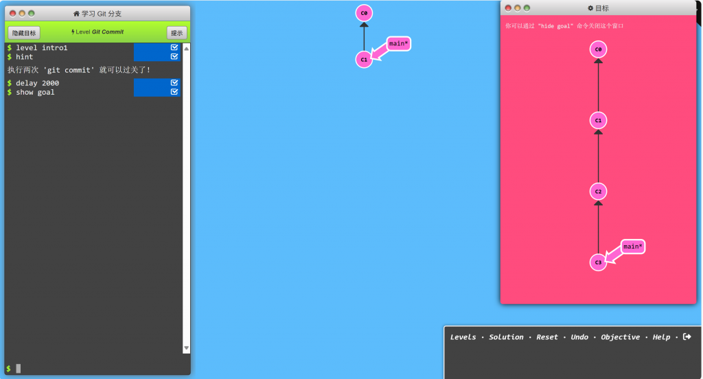 在 Learn Git Branching 的基础关卡中,默认会自动模拟 “有修改待提交” 的状态(无需手动 git add